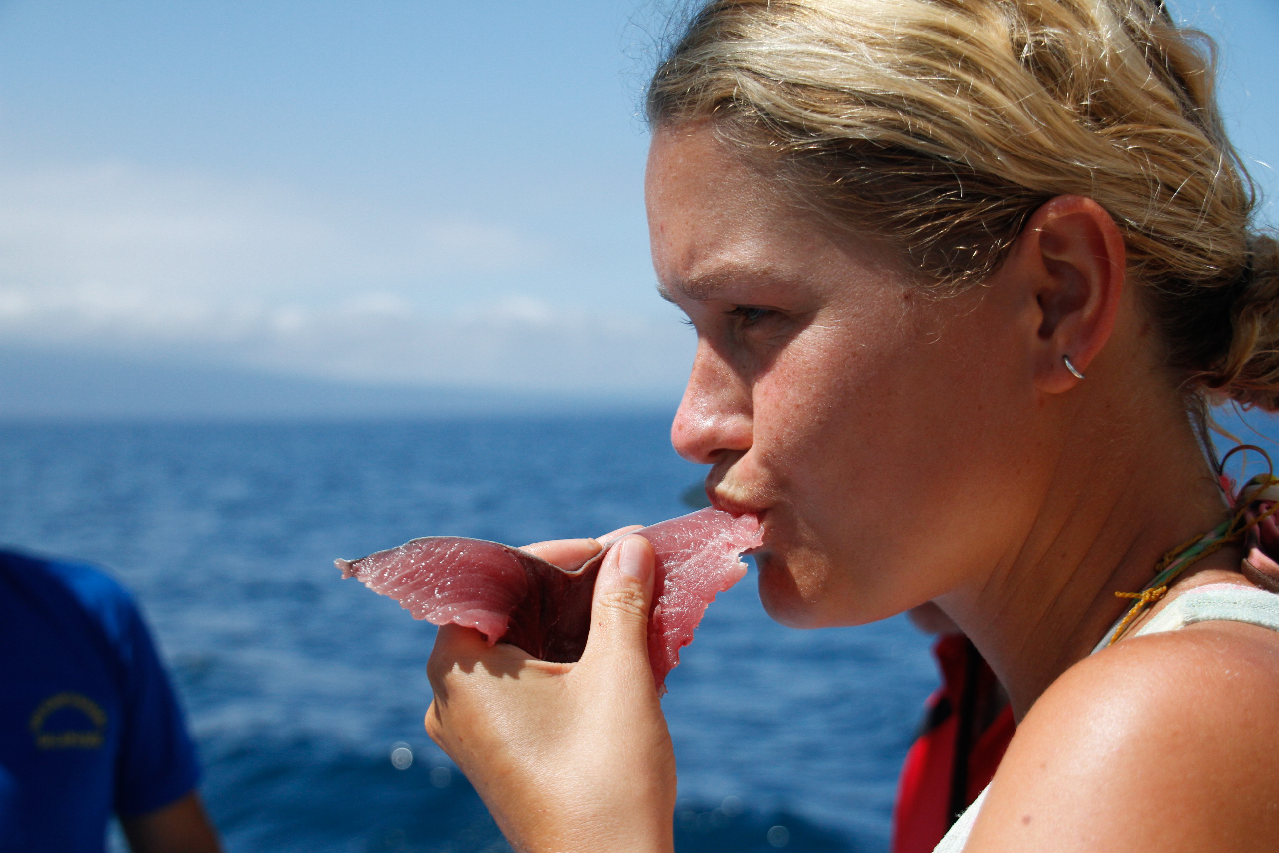 One last thing. On our cruise last Thursday a couple of fisherman dropped two tunas off. The crew cleaned them and several of our group sampled a freshly cut piece of sushi. (I wasn’t one of them) We had tuna steaks that night for dinner.