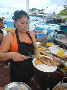 This guy isn’t what your typical Galapagan looks like but I liked his face. He’s having a coconut juice he bought from a street vendor nearby. I’ve played it pretty safe and haven’t eaten much, other than the chocolate cake, from a street vendor. What could they do to chocolate cake?
