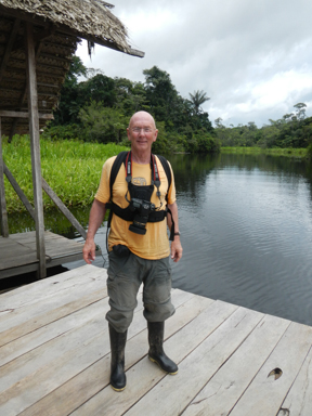First they bailed out the boat before putting the seats back in. Then we paddled to our starting point. It rained much of the hike but we were primarily looking for birds. About the only mammals here that we’ll see are some monkeys. The birds are everywhere and the guides are amazing at spotting them.