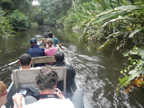 Javier would be my guide along with this couple from San Francisco and the two guys from New Jersey. After our motorized canoe ride complete with a boxed lunch, we had a roughly 1/2 walk on a 6′ wide boardwalk over the swamp to the last leg of our journey. A paddled canoe trip to the lodge.
