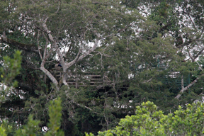 After lunch, another guest, Clinton, from British Columbia and I went back to the canopy tower.  We stayed there until after 6pm and finally, I was able to get some good pictures.  As I mentioned, the tower is 120′ high and the platform is probably about 50′ x 30′.  There are 210 steel steps to the wood platform.  The first shot is the tower from a canoe earlier in the day from some distance to show it in the top of the tree.