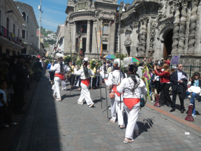 Because today was Palm Sunday the Plaza Grande was crowded with people. There was procession of muscians and dancers that led the congregation into the largest cathedral in Quito, La Compania de Jesus.