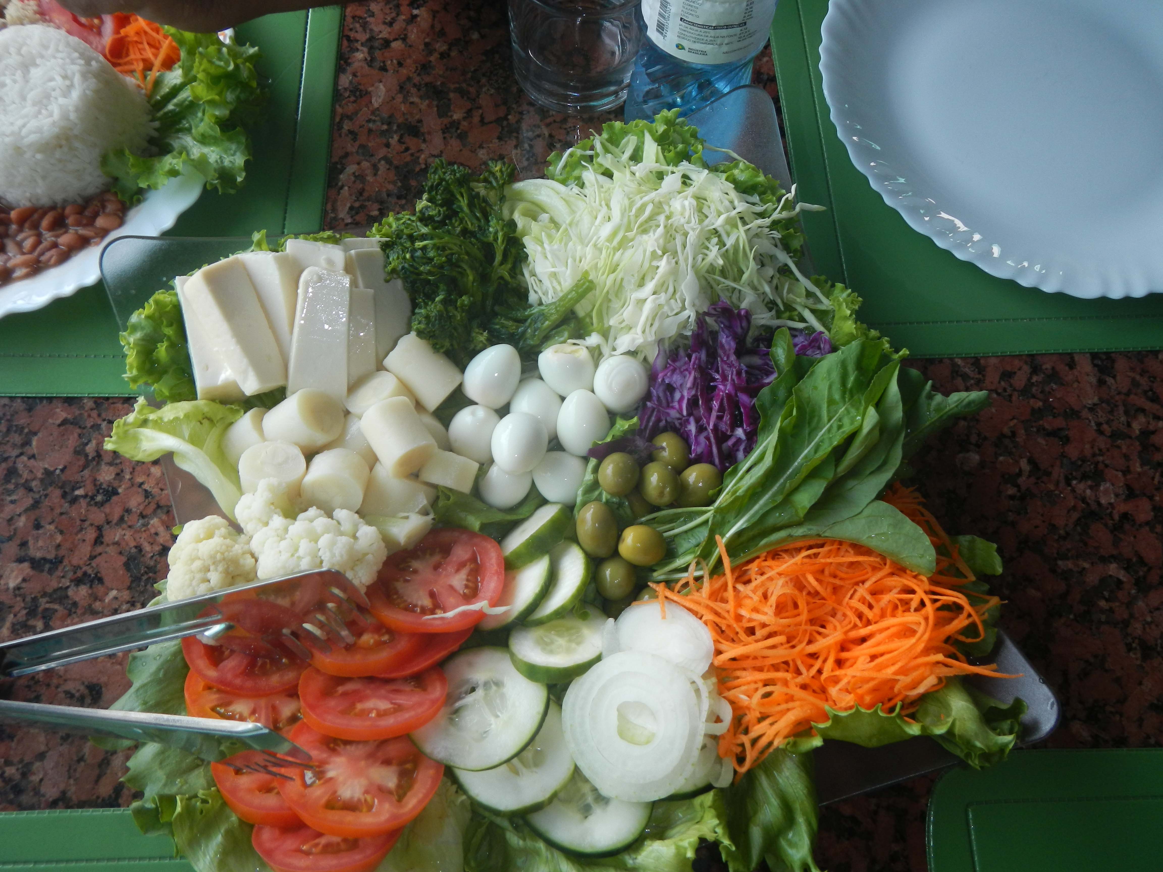 I had a salad for two (couldn’t get it for one) consisting of quail eggs, swiss cheese, hearts of palm, lettuce, asparagus, spinach, carrots, onions, cauliflower, tomatoes, cucumber and cabbage. I shared with Umberto even though he had meat and fries,too.