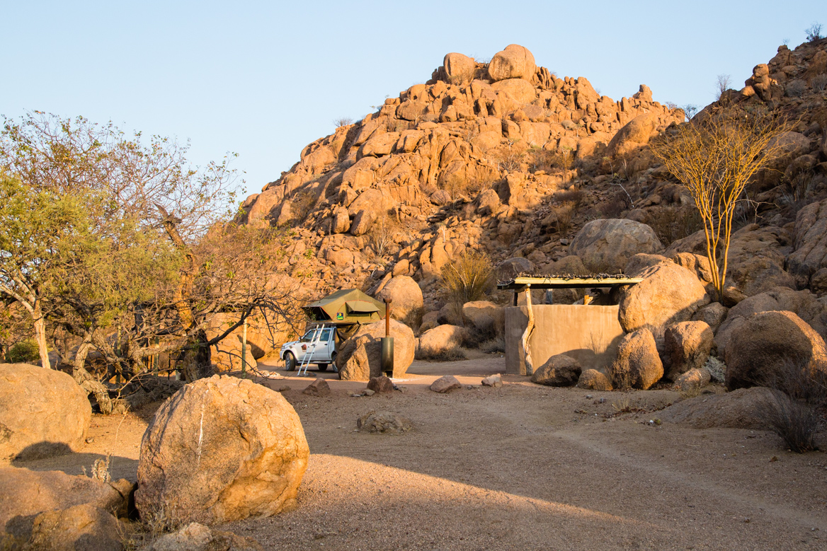 The day before I was camped at Mowani Mountain Campsite. There is a resort at the top of the mountain/hill but campers can’t use the facilities there. Costs are $250-400 per person per night at the resort. Less at the base of the mountain. Here’s my campsite.