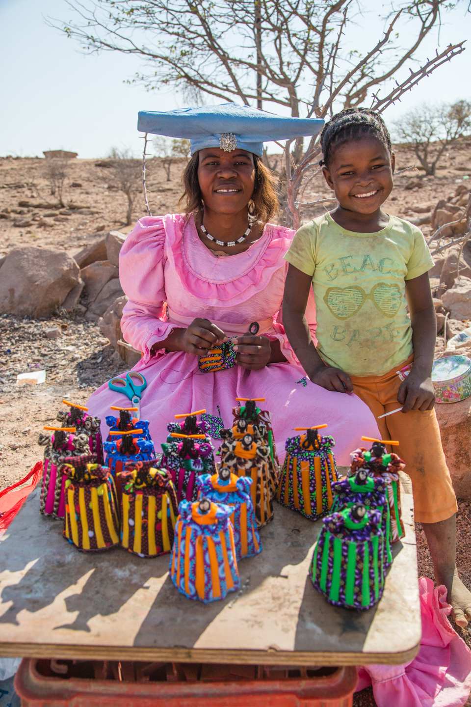Driving from there to Cape Cross, I stopped a couple of times to photograph some Herero craft people in Ugab. They make a variety of things but one of them are Herero dolls. I bought a couple of small items so that I could take some photos.