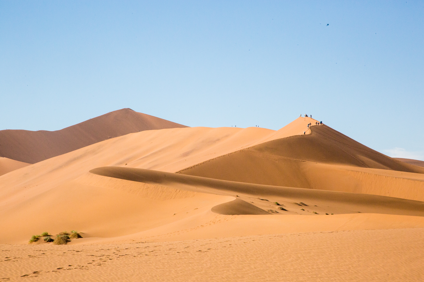 From there it is further south to Sossusvlei which is a location within Namib-Naukluft Park. It’s famous for these huge sand dunes ranging in height from 900-1200 feet. Purported to be the largest sand dunes in the world. The campground, just inside the park, is roughly 40 miles from the dunes. The park gates open to the public at sunrise…6:45am but those of us in the campground get in an hour early. The posted speed limit on the road is 60kpm or about 35 mph. I was the second vehicle in line at the gate when it opened. It was like the Oklahoma land rush. I was trying to keep up with the other vehicles and we were hitting 120kph. Obviously, this isn’t a patrolled road. Everyone wanted to make it before sunrise.