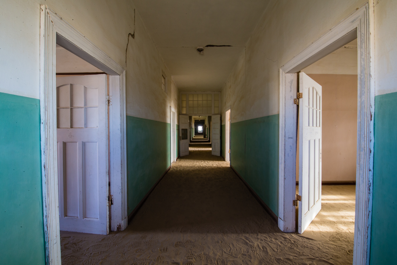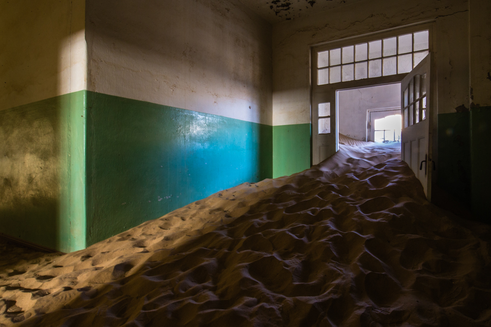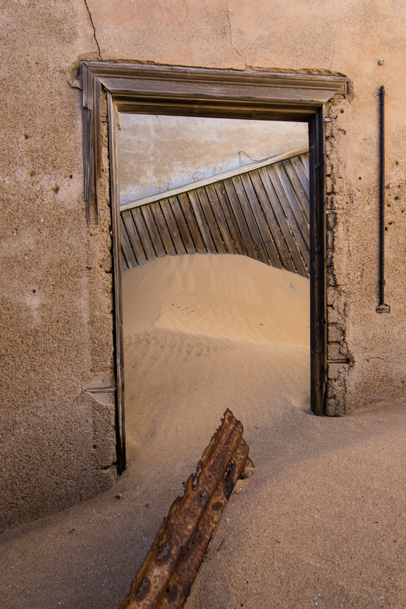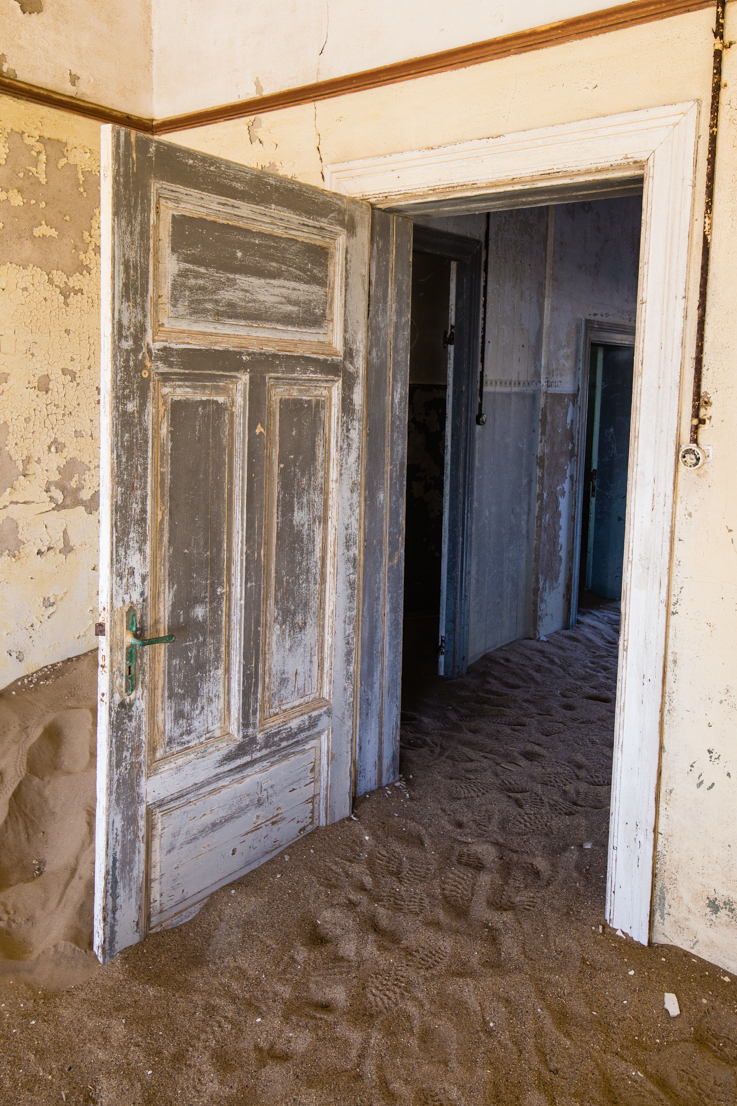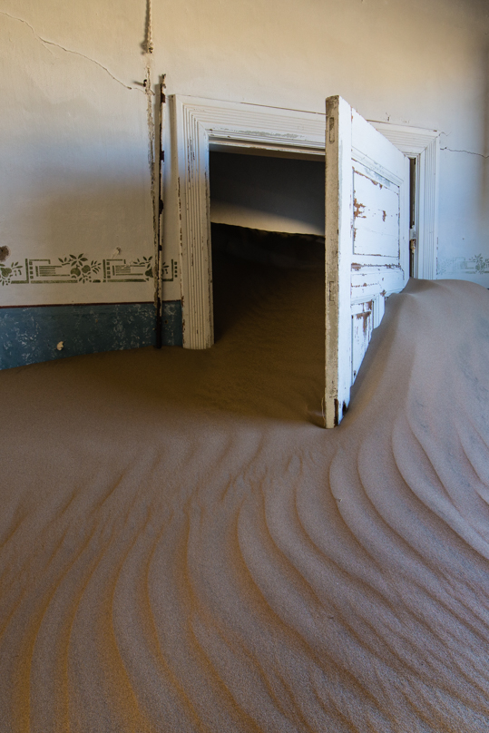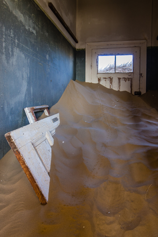 After WWI, the diamond market hit a slump and another more rich vein was found elsewhere. Kolmanskop began it’s decline and by 1956 it was deserted and turned over t0 the desert and the blowing sand. Kolmanskop became a ghost town. Many of the buildings here are slowly filling with sand. I was here at sunrise this morning and the wind was a mild breeze but as the morning wore on, the wind picked up and by 1pm, it’s was hard to stand up and I was concerned that it was going to take the paint off my vehicle.