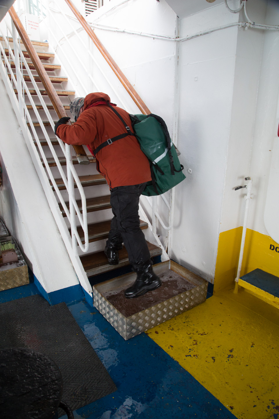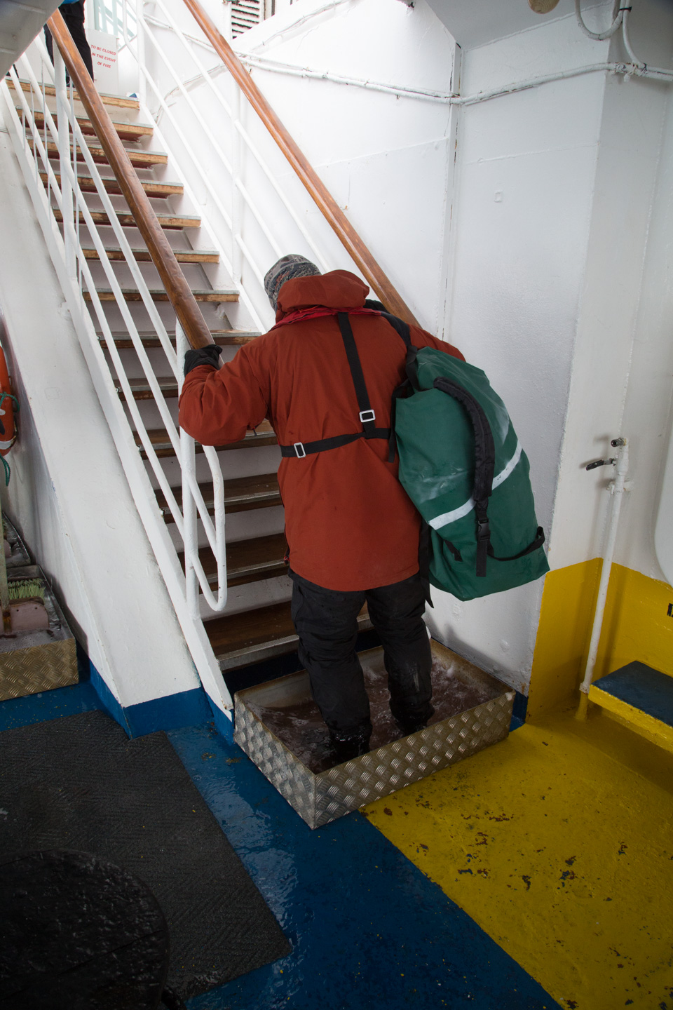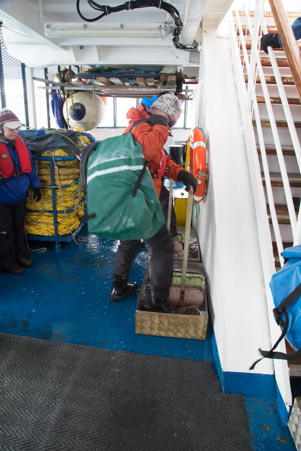 BioSecurity was a big deal. Prior to arriving at South Georgia, we were required to have any item of outerwear or footwear examined for any foreign material…grass, seeds, etc. that could be caught in the Velcro closures on waterproof pants or jackets, for example. You had to vacuum out the lint in pockets, as well as. Camera bags that would be set on the ground were wiped with a vircon solution and tripod legs were dipped in the same solution. Every time you went ashore you stepped in a pan of vircon solution as you headed to the zodiac. When you returned to the ship from shore your boots were scrubbed and as you left the marine deck you stepped in the pan of vircon.