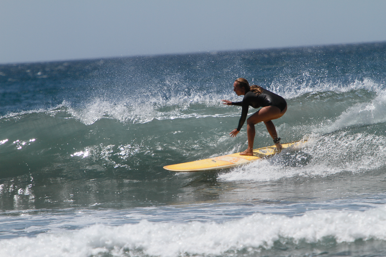 Our folks surfing. Chelsey, Pat, Derek’s former boss and Derek with mohawk. His special haircut for this trip.
