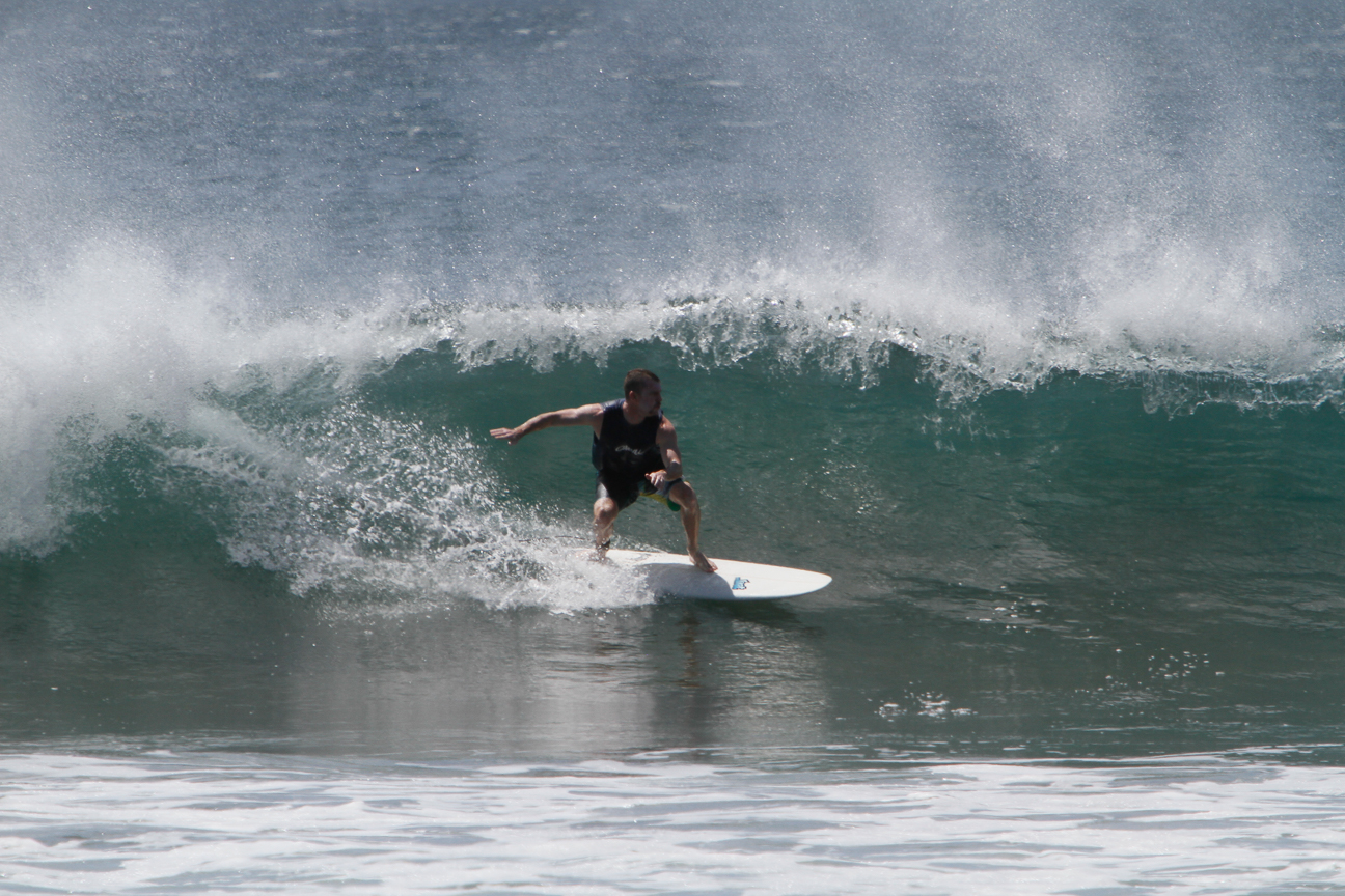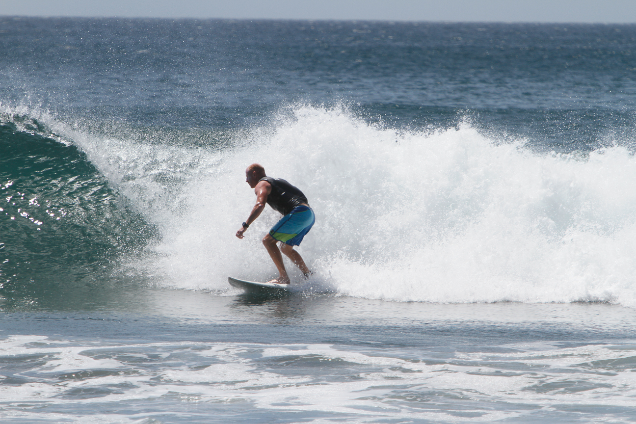 The food is good…expensive…but good. Cokes and water are about $1.75, a beer is 2000 colones or $3.75US. There are seven of us. Four surfers, two photographers and two spouses, one of whom is a surfer.
