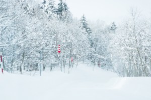 Lastly, here are a couple of other images I made. One is done in black and white of the ship tied to the bollard and the second is in color of a scene shot from the car of the snow covered trees. The color is needed here to draw attention to the down pointing arrows. Those arrows mark the edge of the road for snowplows and vehicles where a painted stripe on the pavement wouldn’t show or a roadside stick might get knocked over by the plows.