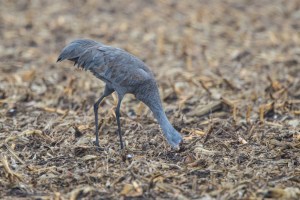 During the day, they feed on waste corn in the cropfields near the Platte River. Many of the farmers in the area leave excess waste corn in the fields for the cranes benefit. They also use their sharp bills to probe for insects under the surface.