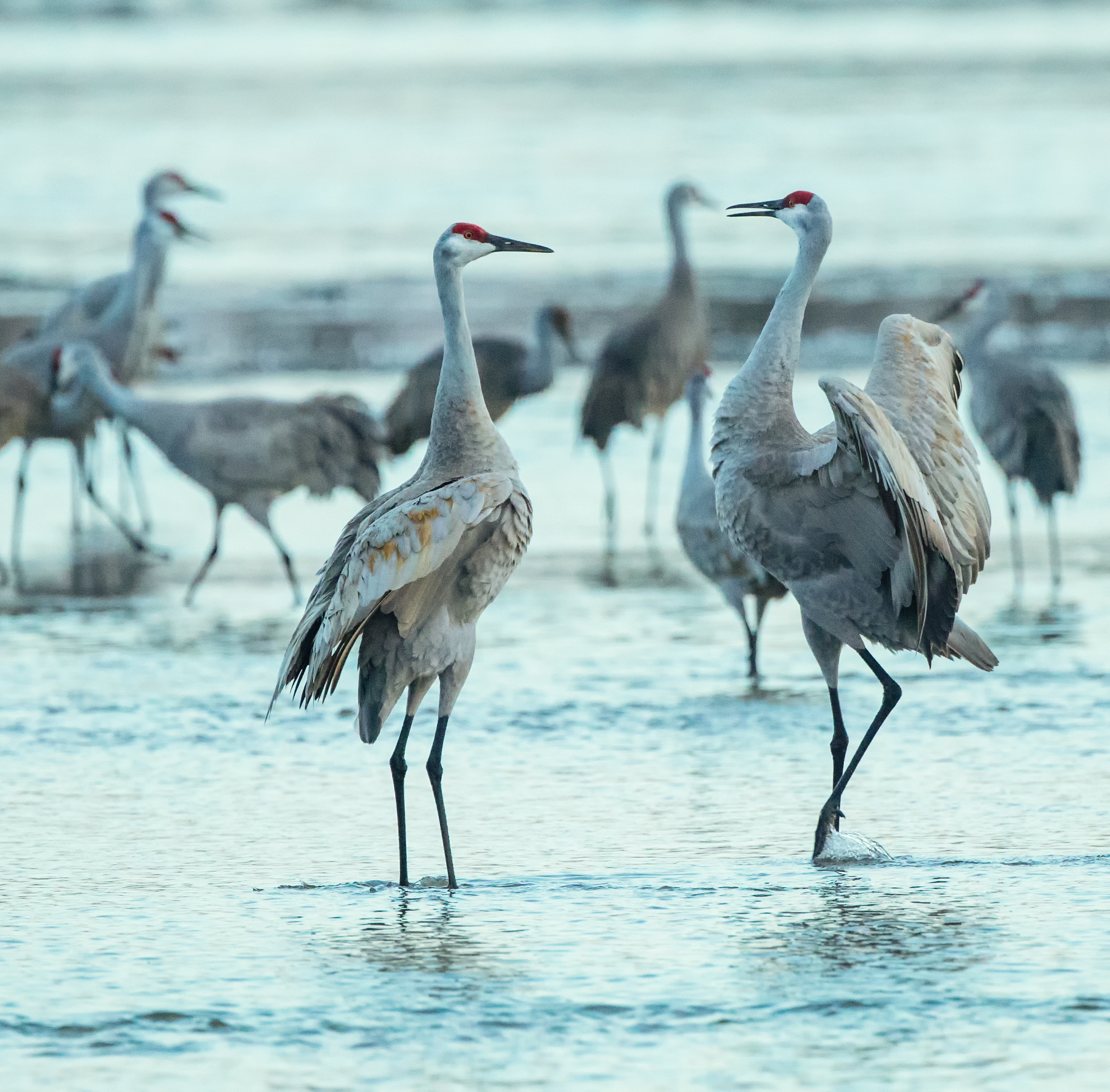 This is the largest gathering of Sandhill cranes in the world. For accessibility, Bosque del Apache in New Mexico is much more conducive for photographers because the cranes that go there are tamer. Photographers line up along the shore there and make images without the many restrictions in place here. The goal of this sanctuary is to protect the cranes and that’s why they are so restrictive.