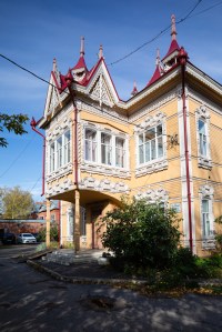 Tomsk is a university town of nearly 600,000. I came here to photograph old wooden homes with a “lace” like wood trim. There are a couple of streets about a 10 minute walk from my hotel where most of them are located. Many are buckling and in need of restoration but a number of them still have people living in them.