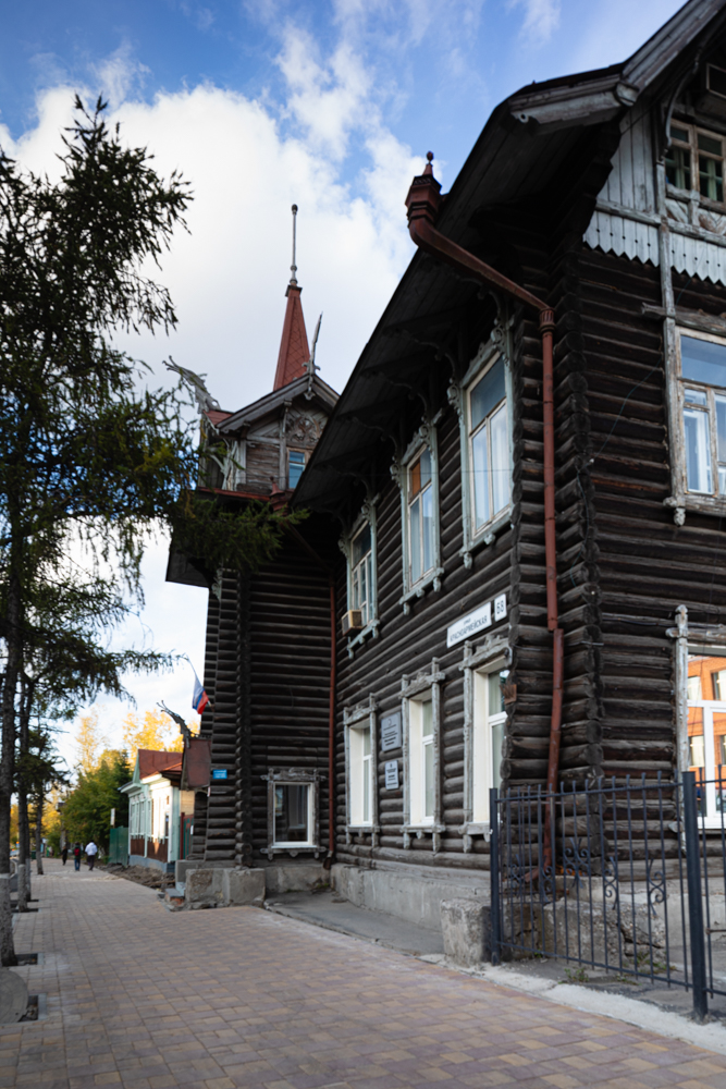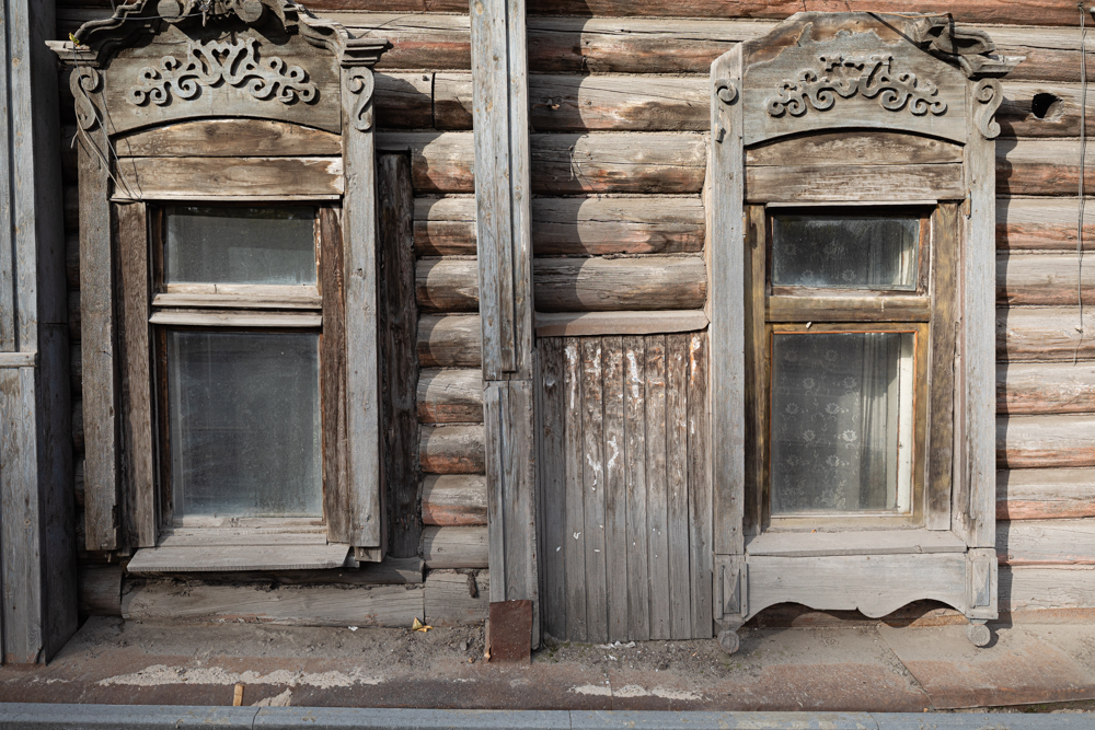 Tomsk is a university town of nearly 600,000. I came here to photograph old wooden homes with a “lace” like wood trim. There are a couple of streets about a 10 minute walk from my hotel where most of them are located. Many are buckling and in need of restoration but a number of them still have people living in them.